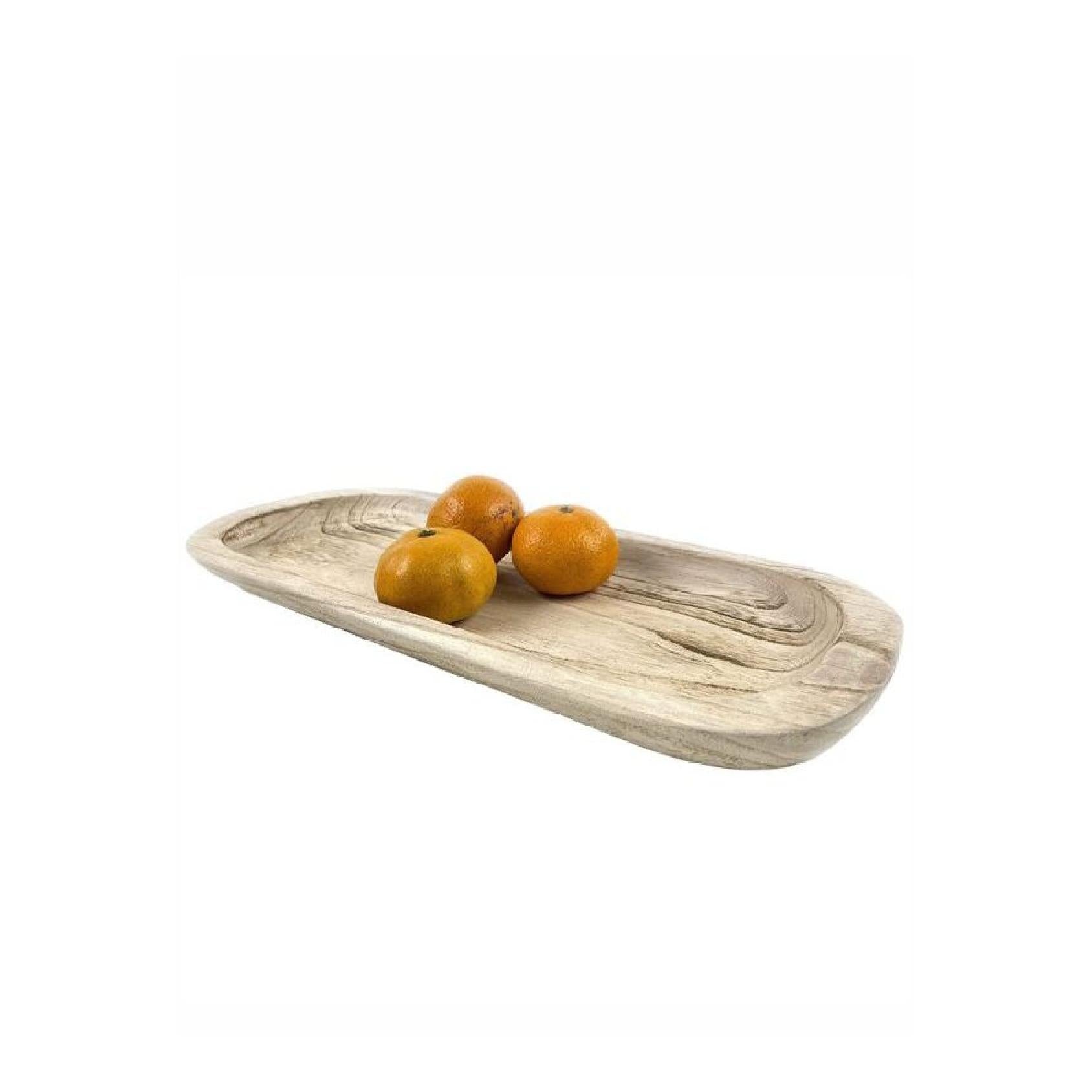 Its elongated shape & smooth, organic edges make it a striking centrepiece for consoles, dining tables or kitchen counters. Crafted from natural wood, each piece features unique grain patterns that add effortless character.