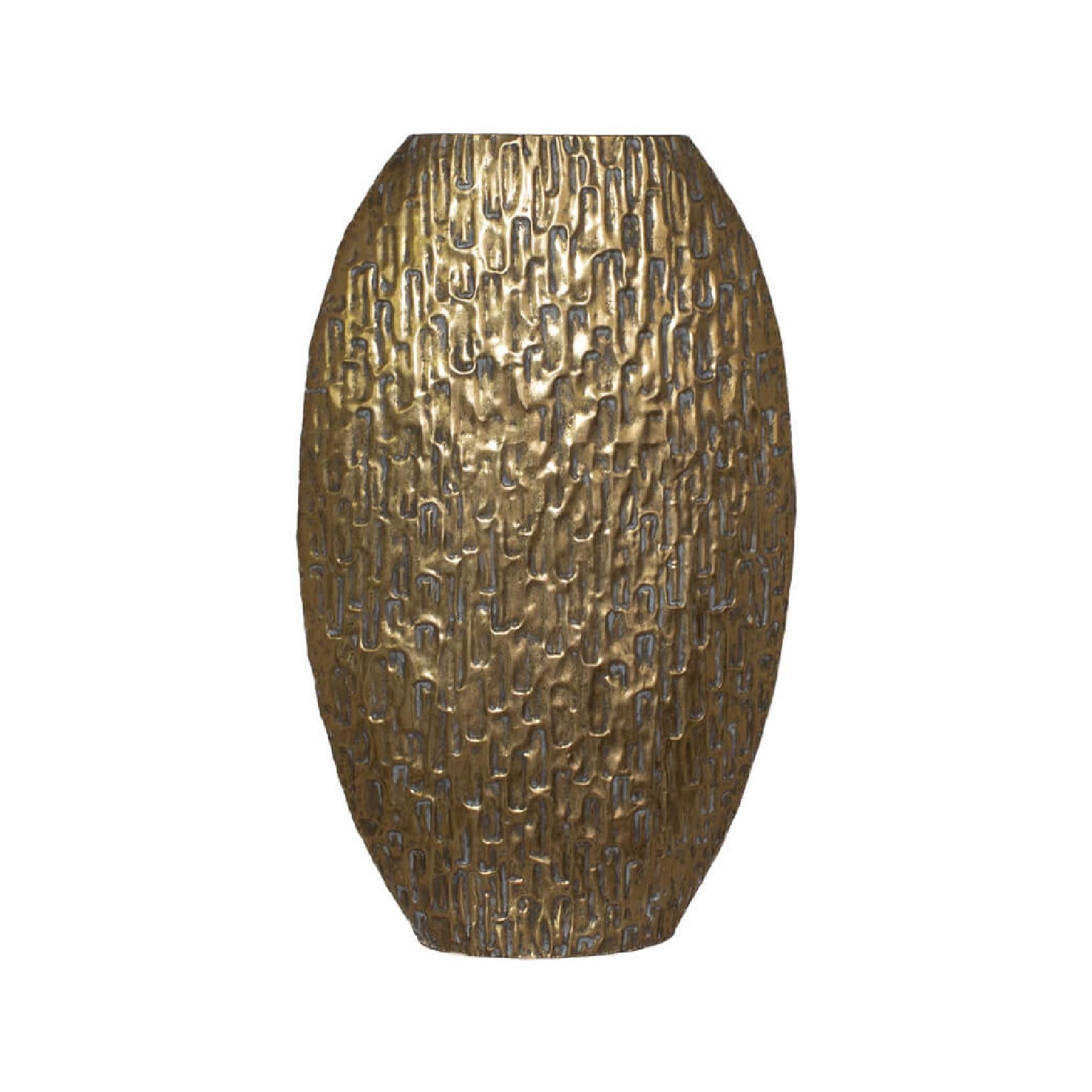 Richly textured & quietly luxurious, the Hammered Gold Metal Vase brings instant warmth to consoles, mantels & dining tables.