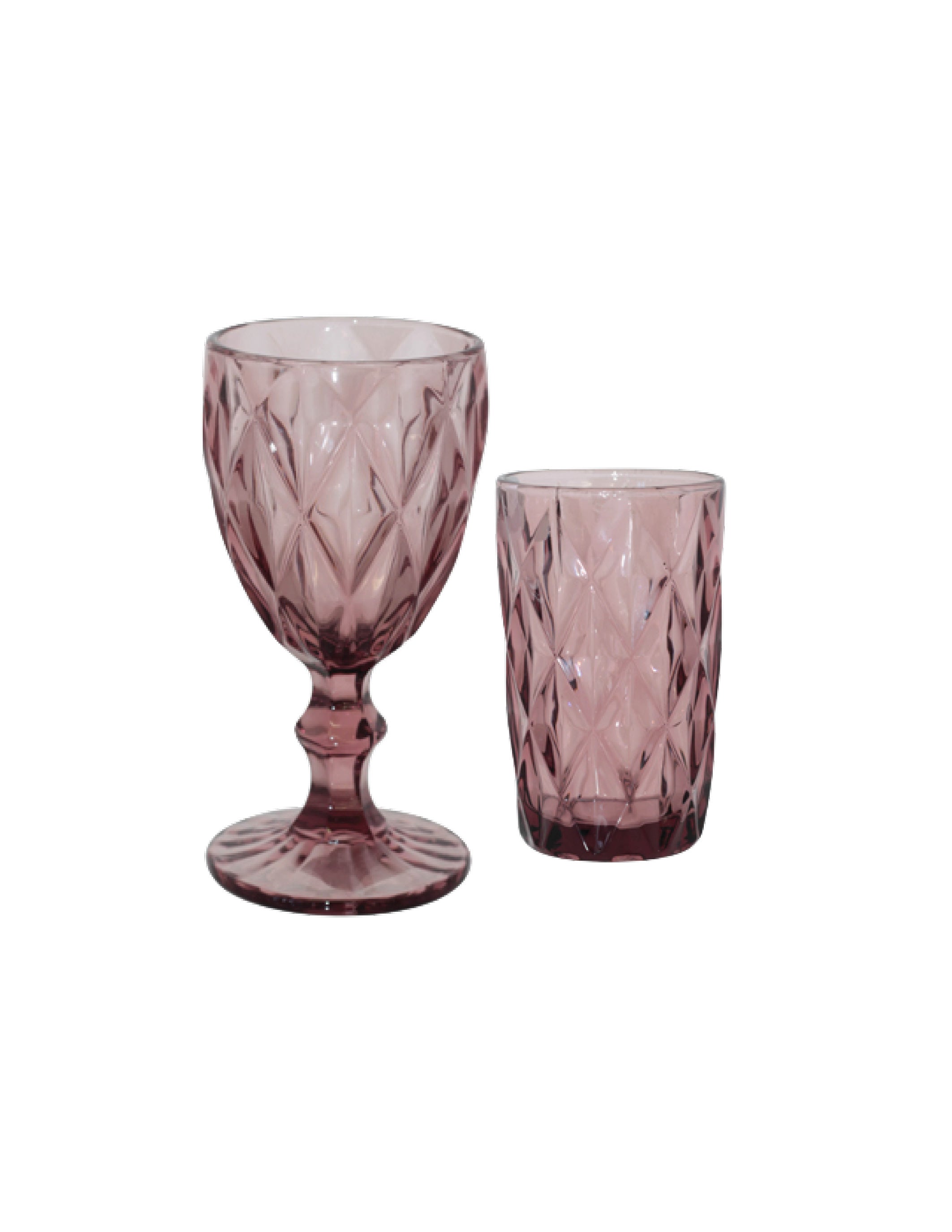 This set includes a wine glass & hi ball.